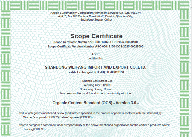 公司自營和代理服裝、食品、五金、化工、機電等各類商品及技術的進出口業(yè)務,公司有專門的生產、加工基地,并通過了Oeko - Tex Standard 100、GRS、OCS、RCS、USCTP等多項認證,可以按客戶要求設計生產,同時承辦中外合資經營、合作生產、開展“三來一補”以及技術輸出、易貨、邊境貿易等業(yè)務。公司產品出口到日本、法國、俄羅斯等50多個國家或地區。